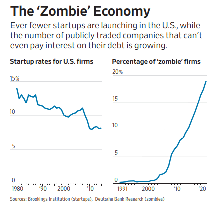 The problem with increasing debt burden is that every additional unit of debt is leading to decelerating increase in GDP growth which means at some point in future there will come a time when further debt will not only lead to stagnation or decline in GDP but will increase further debt burden and increased liability. Such scenario indicates an event where interest liability will be met by raising further debt. This is quite similar to marginal utility as more and more units of debt get poured in, they end up in places where the real benefits will be far lesser and the burden on the consumer gets further added up. Hence, we find that the number of zombie corporations has been increasing and is now touching 15-20% in some regions. This means more dead wood for the next fire as they line up for defaults.