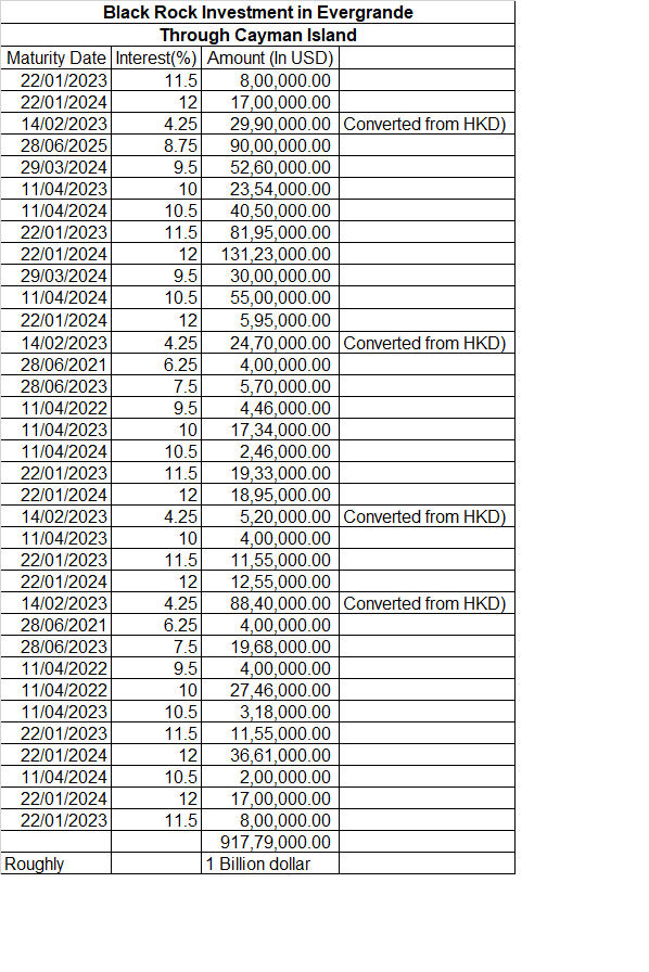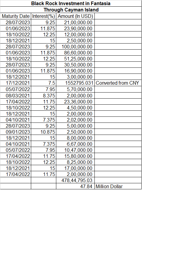 List of bonds held by Blackrock in Chinese Real Estate and Financial Cos.