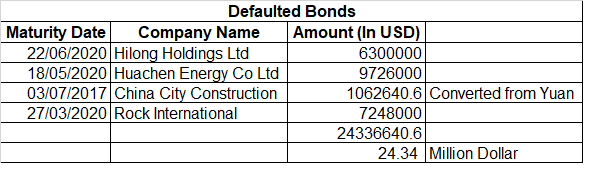 This is a list of bonds having exposure to the Chinese real estate and financial markets.