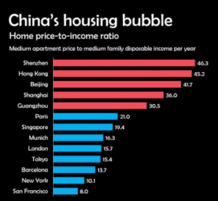 The gap between the average income of person in China to the cost of housing is 1:46 i.e. highest after Hongkong and other first world nations. So, the king of wealth inequality reflected is just unimaginable.