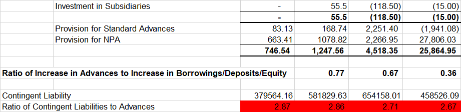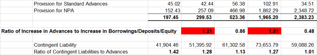 Similarly in case of contingent liability the ratio is always problematic as the aggressive loans disbursement policy forced bank to enter into high risk ventures.