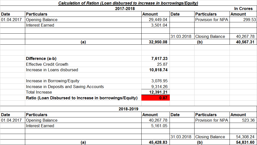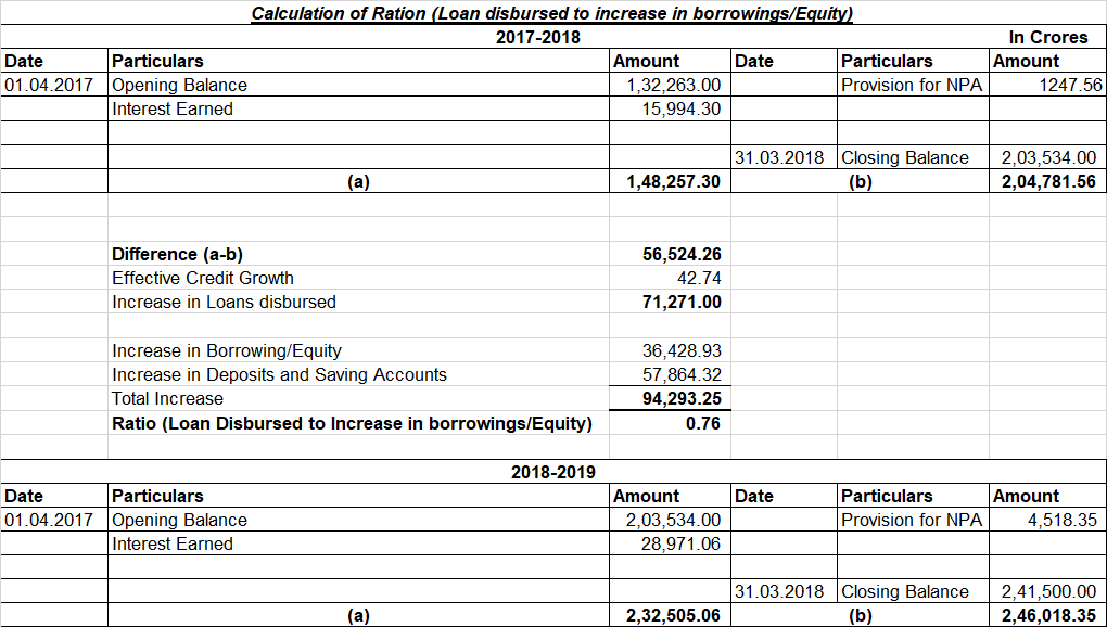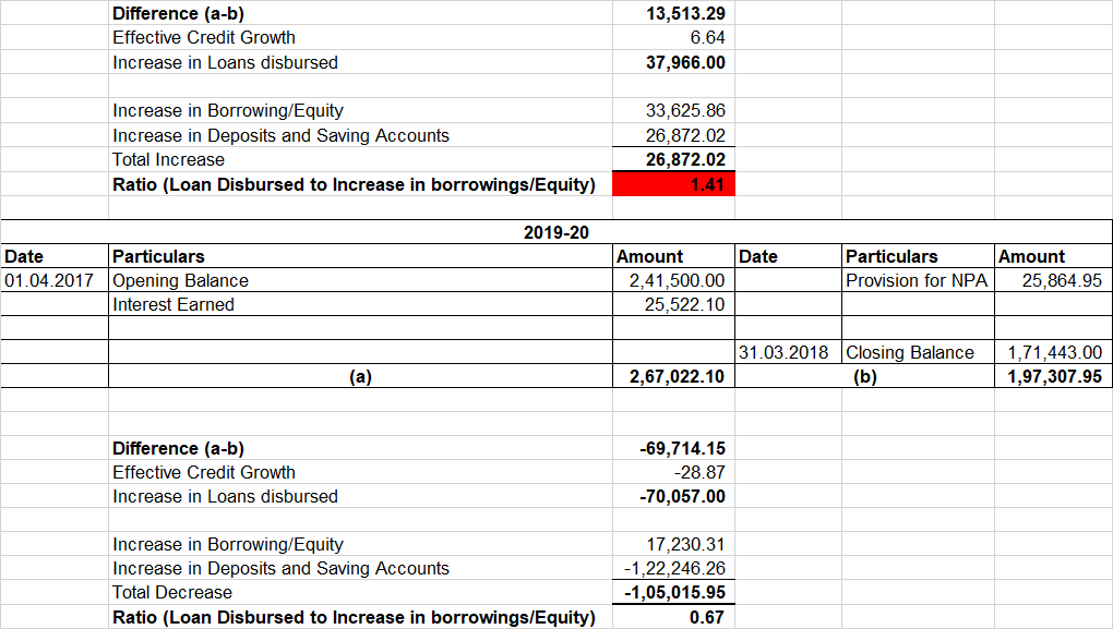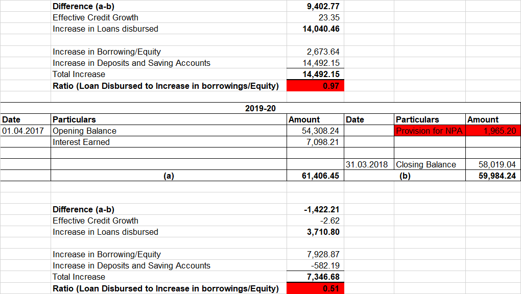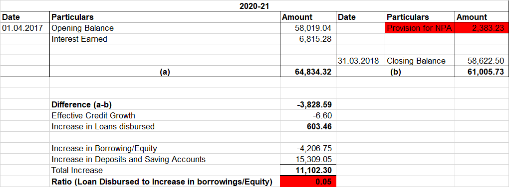 In case of Loan disbursed to increase in borrowings/Equity, the ratio is semi variable. Being statutory branch auditor for various PSU for last 10 years, we have made a range for same. When it is 0.50 to 0.90 the inflow and outflow of cash is regular in bank and is in a comfortable position. But when it crosses 0.90 and starts touching 1, the stress level in bank is at highest. So when it touched 1.41 in FY 2018-19, bank was at critical stage and the fall of bank was inevitable. Similarly when the ratio falls below 0.50 the surplus deposits or borrowings (which we will show you in RBL bank where ratio is 0.05 for FY 2020-21) are in excess of advances and slowly the margins shrink and borrowing costs become heavy.