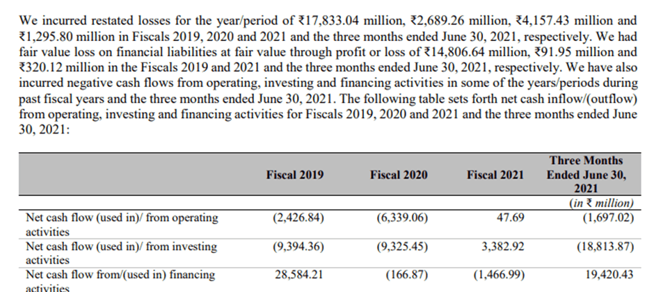 From the above points it has been only observed that near to IPO, losses are reduced substantially and still the company remains in losses. But the funds are actively participating with public money in such IPO. Like in this case the company itself is admitting that they will be making losses in near future due to the intensity of competition. The financials reflects that they have increased turnover with substantial cash burn. The moment the cash support Is not given, the company will become bankrupt. In anticipation of this it is infrerred that once the founders are moved out, followed by anchor investors, it is anticipated that there will be change in management and a few loss making business will shut down. May be a year down the line.