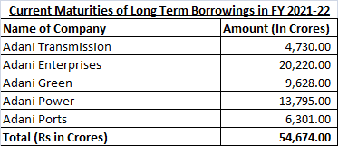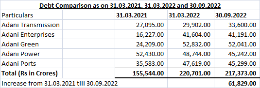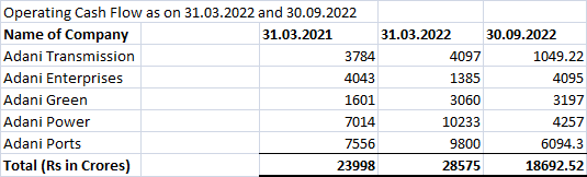 Source:Annual Report of Adani Enterprises, Adani Transmission, Adani Ports, Adani Green and Adani Power.