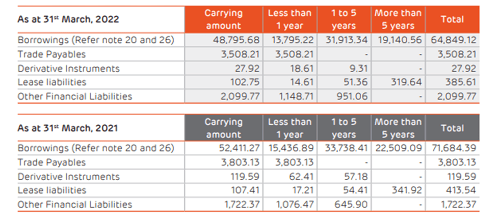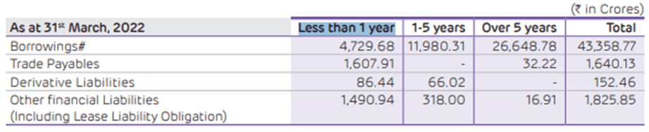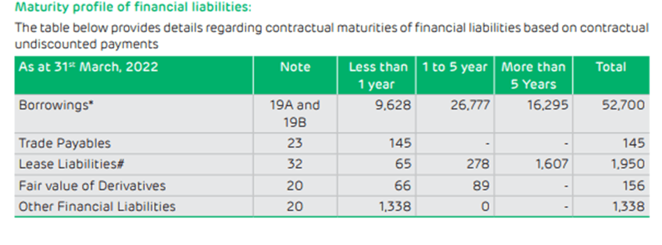 What does that indicate:Against operating profit of Rs 30195 crore, Company is paying 14144 crore as Finance Cost which denotes 47% of profits. Imagine when cheap credit cycle its 47% then how much time will take to cross 60-70% in case of Expensive credit cycle or any rating degradation. Since S&P has put negative outlook on Adani Green and Adani Ports, the cost of debt will suddenly increase.