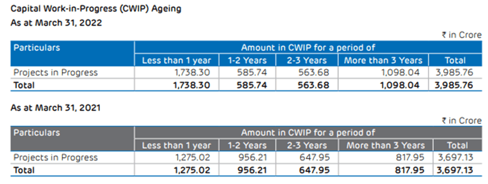 Another interesting thing which we found is CWIP after amendment in Companies Act 2013 with respect to disclosures of agewise.The analysis is as under:
