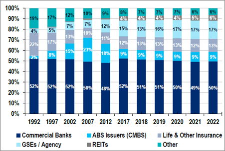 In current scenarios where US bank (small / regional banks) failed on account of Asset Liability, attention has naturally turned to how important these banks are to the commercial real estate market. The Mortgage Bankers Association (MBA) defines smaller banks as those outside of the top 25 largest banks by total assets. As per Mortgage Bankers Association’s (MBA), around 4690 US smaller banks account for around US$2.1 trillion of all CRE loans which accounts for 38% of total mortgage debt outstanding.6